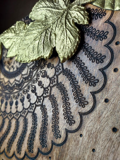 Most pieces are one-of-a-kind. Though I use many of my mandalas over and over, the pieces themselves are found pieces, and the way I utilize the design varies. It is rare for me to repeat work. Another factor that makes each piece unique is the recent addition of semi-precious stones and gems to emphasize pieces. I tend not to list unique pieces for sale online because the process of listing each and every new thing is just too tedious. Find my unique work in person at art shows, and grab while you can, because once it's gone there may never be another like it!